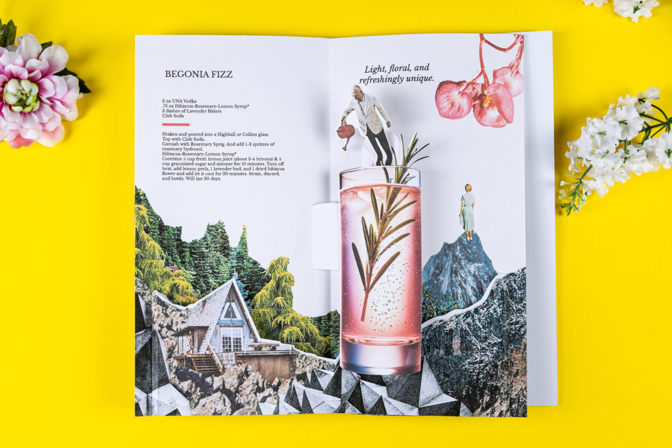 UNA Vodka Libracos Atelier created this fold-out recipe catalog for UNA Vodka, a luxury drink made in Florida, United States. Bajo el Azur Studio made the photographs and video of the expandable catalog. Madrid, 2025 + Works